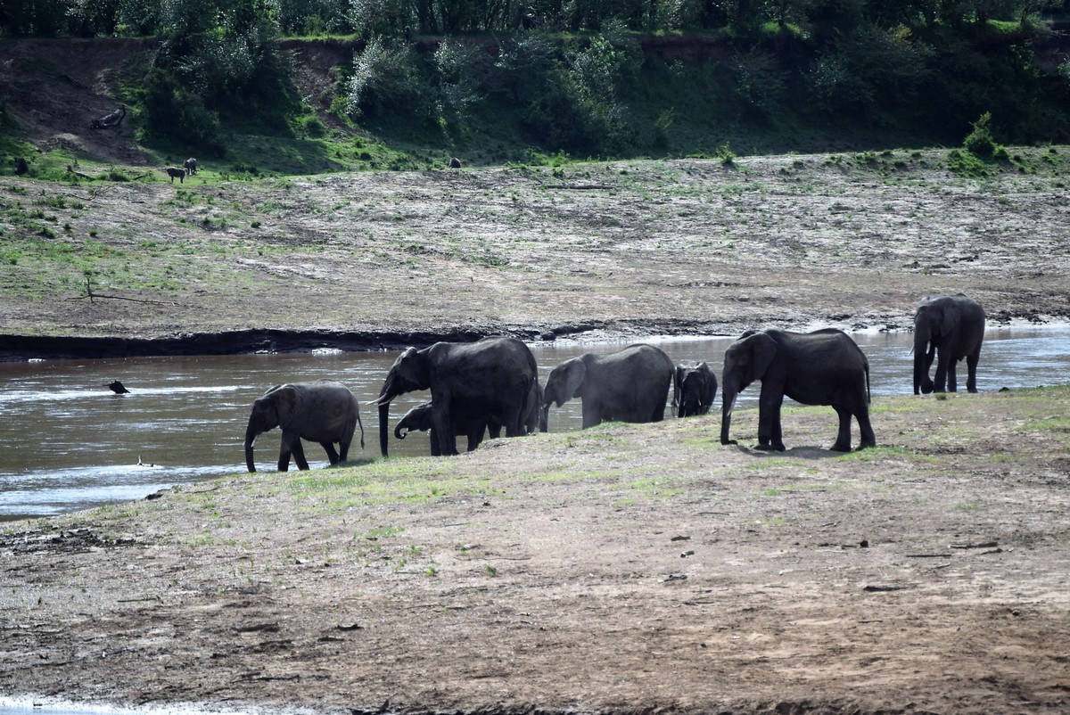 Elephant herd at water hole Maasai Mara