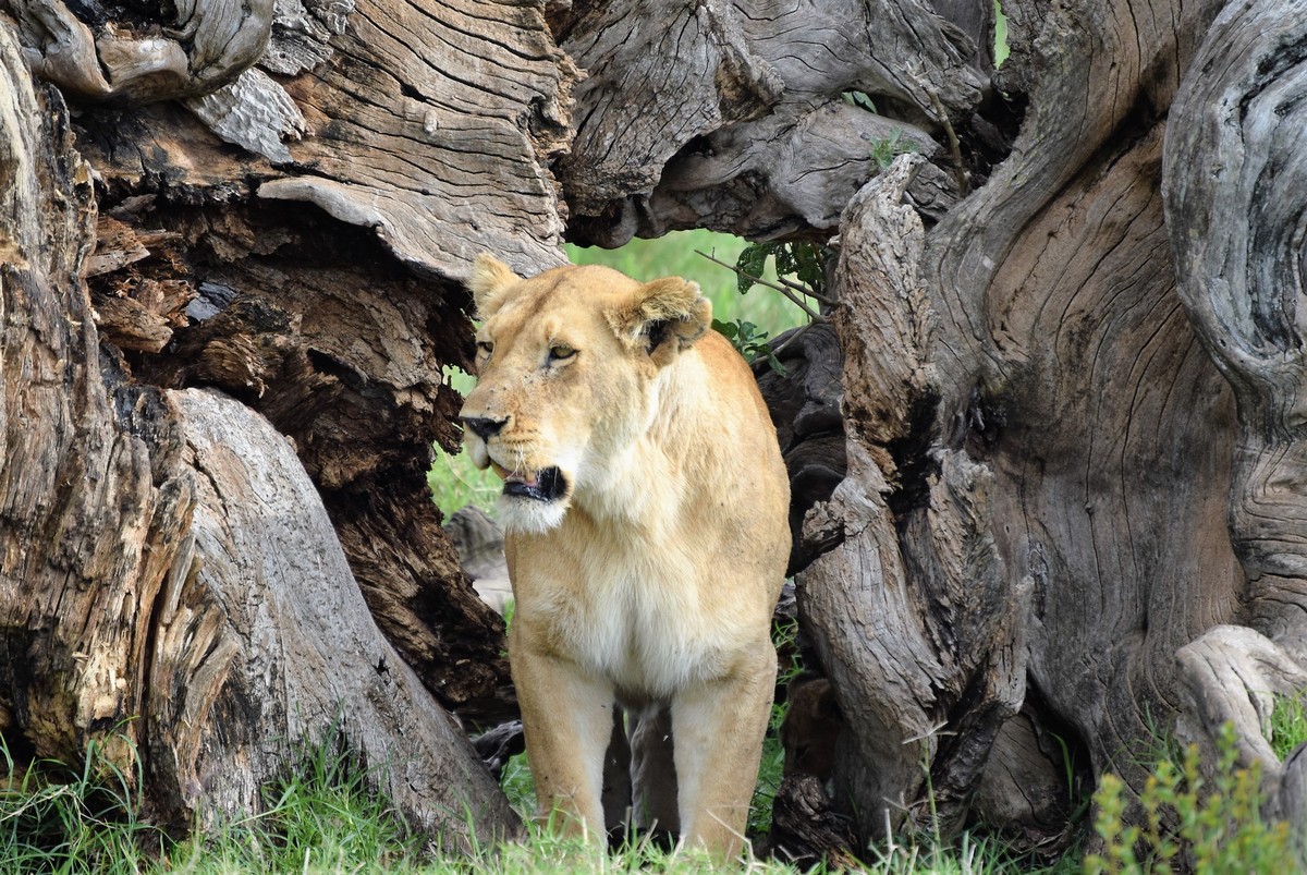 Lioness in dead tree Maasai Mara